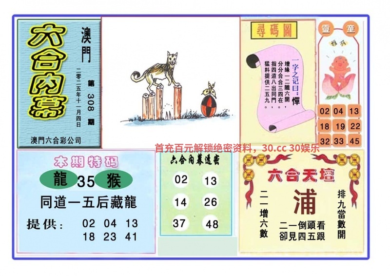 310期:六合三怪/内部平特诀/独家六合玄机/六合对诀/波色输尽光